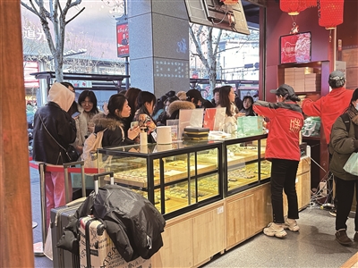 临近春节,知味观(湖滨店)生意很好,不少市民、游客正在店内选购伴手礼