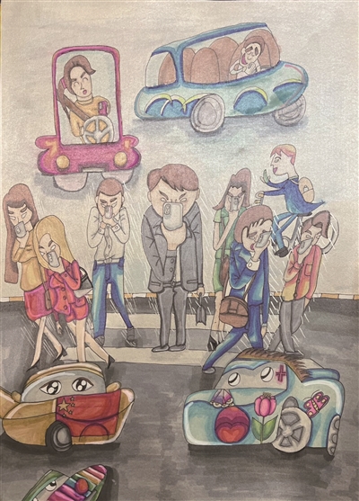 《全民低头,一机障目》 作者:陈奕辰(杭州蔚儿画室 )