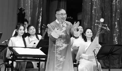 1月26日,在白俄罗斯首都明斯克,演员在白俄罗斯国家音乐厅与观众互动。 白俄罗斯“欢乐春节”《古籍里的古曲》新春民族音乐会1月26日晚在白俄罗斯国家音乐厅举办,白俄罗斯各界代表和在白华侨、中资企业、留学生代表等600余人出席。