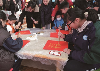 杭州:“新年集市”体验非遗 2月3日, 浙江自然博物院杭州馆举办“喜迎辰龙新年集市”,前来观展的家长和孩子们参与投壶、写春联、拓印、剪纸等活动,体验非物质文化遗产的魅力,迎接龙年新春佳节。新华社发