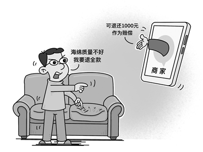 这期间,我只能继续在线上向商家多次反馈情况,对方表示可以退1000元作为赔偿。但我认为,更换过海绵的沙发影响日常的使用,我提出了将现在的海绵退还给商家并退全款的要求,但被商家拒绝了。之后此事就不了了之了。