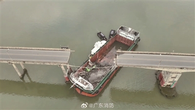 2月22日5时30分左右,一艘集装箱船“良辉688”空载从广东佛山南海开往广州南沙途中,航经洪奇沥水道时,触碰沥心沙大桥桥墩,致该桥桥面断裂。