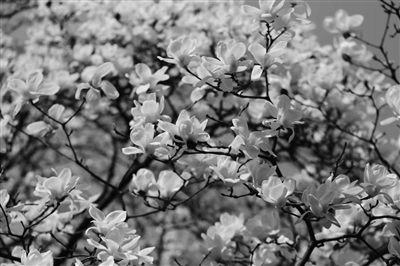 白玉兰是园林应用中最广泛的种类,因为栽培历史悠久,在花色、花型、花量上有较多细微的差别。一般认为纯白色的为栽培选育的品种,野生的基部略带一点淡粉紫色。白玉兰树皮老时粗糙开裂,小枝粗壮,灰褐色。白玉兰在全市各大公园、广场、小区中常见,花期一般为2月中下旬至3月中下旬。