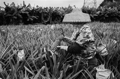 金钻凤梨的种植周期长达18个月,在此期间,要完成种苗、施肥、除草、催花、套袋、砍叶及采果等工序。