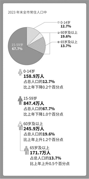 2023年末全市常住人口中年龄构成