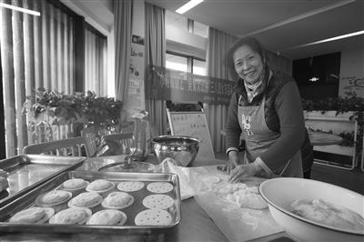老年食堂工作人员正在备餐