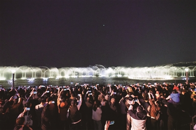 昨晚,在湖滨三公园附近湖面上,西湖音乐喷泉再次绚丽绽放,现场播放了《梁祝》《千年等一回》《同爱同在》等4首歌曲,展现出一幕幕美轮美奂的画面,吸引了众多市民游客前来观赏打卡。西湖音乐喷泉自昨日起恢复正常喷放,地点在西湖湖滨三公园,每晚一场,19:30开始,连续播放四首歌曲,总时长15-20分钟。商报记者 项凯 摄影报道