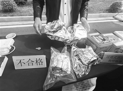 消防人员解释,逃生面罩最主要的作用是面罩上的滤罐可以过滤烟气中的有毒物质,但当逃生面罩包装内有气体,滤罐就可能存在失效的风险。此外,打开面罩若有银漆脱落也是不合格的。