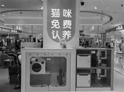 杭州某商场内的免费宠物领养柜台上贴着大幅海报