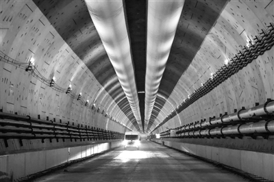 3月15日,广州至湛江高速铁路湛江湾海底隧道顺利贯通。该隧道由一台直径14.33米的盾构机掘进,历时33个月,掘进7551米,是目前国内独头掘进距离最长的穿海高铁盾构隧道。广湛高铁为国家“八纵八横”高速铁路网的重要组成部分,设计时速350公里。这是广湛高铁湛江湾海底隧道海陆交界处的红色指示灯环。