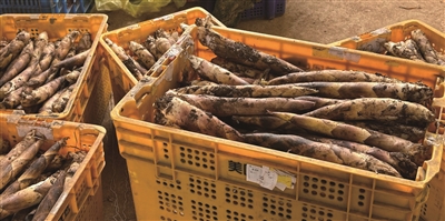 刚挖出来的春笋经过初步分拣,等待小象超市春菜专线装车李叶 摄