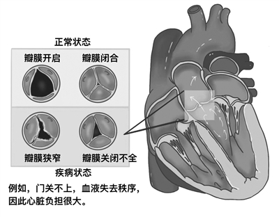 “后面的血液往前走,前面的血液却掉头往后走,或者,前面的血液被卡住了,门也出不去。长此以往,心脏负担很重,从而出现胸闷、乏力的症状。心脏瓣膜病就此产生。”孔敏坚表示,心脏瓣膜病会逐渐严重。“就像小楼的门出了问题,刚开始只是关不严实,留条缝,或者不能完全打开,随着瓣膜病的进展,门缝越来越大,或者门越来越打不开,一直到一定程度,严重影响到血流流动的时候,就需要干预和治疗。”