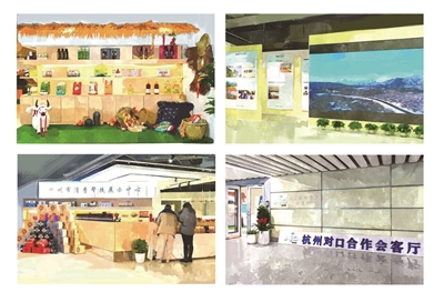 这里是杭州市发改委(市支援合作局)设立的第一个对口合作会客厅,总面积约1200平方米,介绍了整个杭州对口工作的发展史,设有农特产品产销区、文旅推介区、交流洽谈区、领军企业展示宣传区和临展区五大区域,包含宣传推介、展示展览、人才培训、商务洽谈、主题会议等多方面功能。