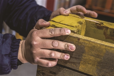9点上班,17点45分下班,中午有午餐休息时间,每天工作时长8小时,周一周二双休。劳动让家豪的双手皮肤粗糙、长满老茧,完全看不出这是一双20岁青年的手。