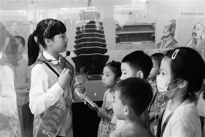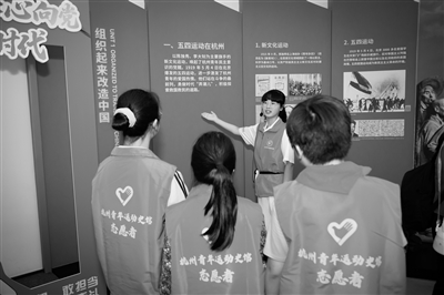 王鑫在杭州青年运动史馆教小志愿者做讲解