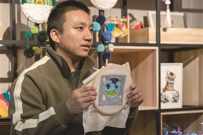 一团毛线能做什么?杨小晖能用它绣一片杯垫,只需一个小时,如果再给他点时间,能绣一幅装饰画。