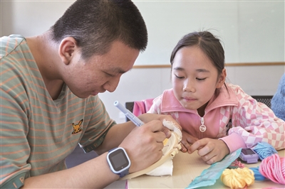 2020年,学校恢复了一度中断的绒绣课。但是现在的学生能力比以前更弱,照搬照用是不行的。比如,原先用很细的空心针,穿针要含在嘴里把线吸进去。现在这一步,学生就做不了,还有安全隐患。