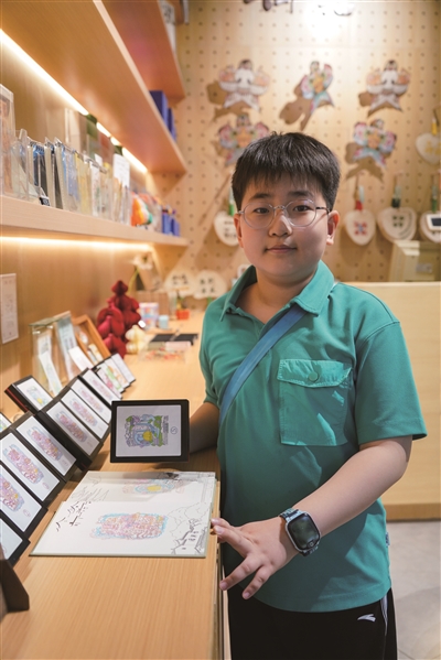 ①一位小朋友正在清河坊的一处“国潮印”盖章点集章。