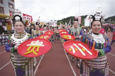 5月4日,贵州省黔东南苗族侗族自治州榕江县“村超”球场,一支拉拉队带着美食入场。