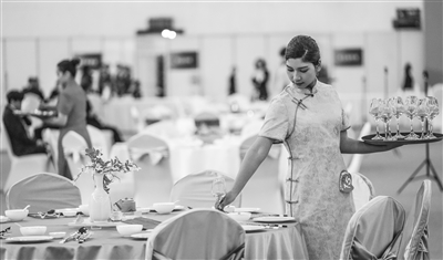 这是5月8日拍摄的第二届全国乡村振兴职业技能大赛餐厅服务项目比赛现场。 5月8日,第二届全国乡村振兴职业技能大赛在贵州省贵阳市开幕。本届技能大赛5月8日至10日在贵阳举办,围绕农村实用技能,大赛设砌筑、汽车维修、农机修理、电工、美发、养老护理、育婴、中式面点、餐厅服务、电子商务、茶艺11个比赛项目。