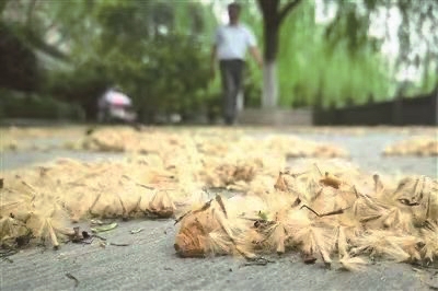 杭州市园文局工作人员介绍,这个季节飞舞的“絮”,主要是果实成熟时的果毛絮,梧桐树结的果实呈小球型黑褐色,在树上滴溜着。“果毛絮”是它身上的外衣,是金色针状或蓬松状,会随风飘散,“虽然被称作‘絮’其实它是从球形果簇脱落的一个个小坚果带着毛的结构,这些黄色毛茸茸的絮毛都是梧桐的种子。”