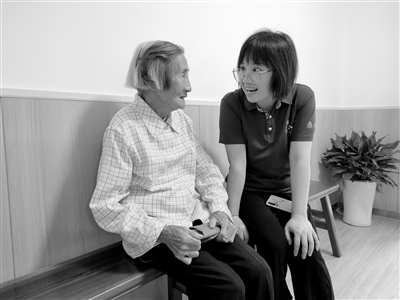 胡蓉正在耐心地陪老人说话