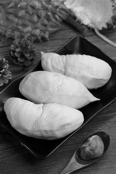 根据现代科学研究和营养学研究发现,榴莲的营养价值很高,不仅富含碳水化合物、氨基酸、维生素和少量脂肪等营养物质,可增强人体免疫力,又因榴莲是高糖类水果,经期女性食之,可以起到活血散寒、缓解经痛、提供能量的作用,特别适用于体寒痛经的人。除此之外,榴莲富含膳食纤维,它可以促进肠道蠕动,缓解便秘。
