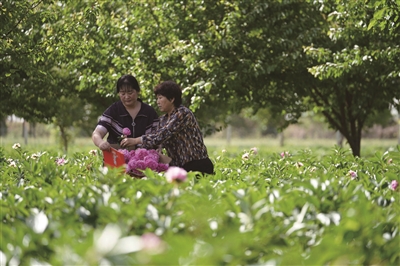 5月15日,游客在河北省邢台市柏乡县内步乡马村芍药种植基地内采收芍药。近日,柏乡县种植的芍药、牡丹、玫瑰等花卉进入花期,花农加强养护管理,并开始采集鲜切花对外销售。近年来,柏乡县以市场需求为导向,积极调整花卉产业结构,推广新品种和新技术,不断培育壮大鲜切花产业,为种植户带来良好收益。