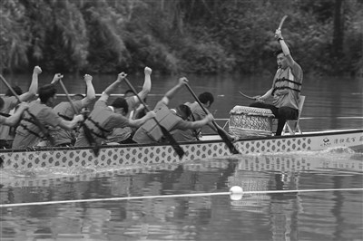 5月29日,在重庆市酉阳土家族苗族自治县龙潭镇,龙舟队在水面角逐。端午节临近,酉阳县龙潭镇举行划龙舟比赛,吸引来自湖北、重庆等地的15支队伍参加角逐。