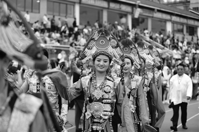 6月10日,日喀则珠峰雪鹰队拉拉队来到比赛现场。当日是端午节,贵州“村超”迎来洛邑古城足球队、呼伦贝尔农垦芥花油足球队、日喀则珠峰雪鹰队等队伍,上演精彩的跨省区赛事。赛事间隙还上演了萨迦索舞、“侍女蹴鞠图”节目等精彩文艺表演和大型音乐烟花秀。