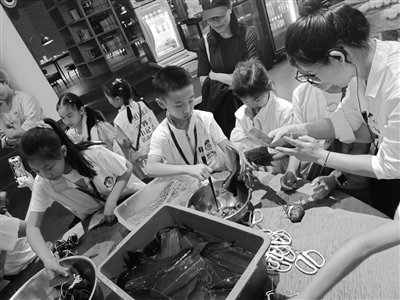 商报记者 徐敏月 6月10日,每日商报小记者实践营携手杭州图书馆开展的“书香杭城 阅享风采” 第七场研学活动,走进了杭州图书馆旅游主题分馆。 杭州图书馆旅游主题分馆位于杭州新天地骊悦酒店一楼,是杭州图书馆与杭州新天地骊悦酒店有限公司合作打造的图书馆。该馆拥有馆藏文献5000余册,类别涵盖旅游、儿童、生活、历史、文学等,可满足不同年龄读者的阅读需求。图书馆还与酒店一楼餐厅、咖啡厅融为一体,是公共图书馆文旅融合道路上的创新之作。 值得一提的是,该馆所有书籍也与杭州图书馆的借阅系统联通,可在全市范围内进行文献的通借通还。 小记者投稿 粽香四溢 传承端午 想象一下,那浓郁的糯米香、咸鲜的肉香交织在一起,仿佛是五感的盛宴在舌尖上绽放。 6月10日下午,在端午节这个充满传统韵味的日子里,我有幸与每日商报小记者们一同沉浸在了包粽子的欢乐氛围中。 制作粽子,如同编织一段古老的记忆。首先,选取两片翠绿的粽叶,它们如同两只展翅欲飞的翠鸟,在手中轻轻展开。接着,将粽叶巧妙地折叠成一个漏斗状,仿佛是在塑造一个盛满历史的小小容器。然后是分层加料,如同为小小的容器注入灵魂。先铺上一层洁白的糯米,那是粽子的基底,象征着纯洁与美好;夹上一块鲜嫩的五花肉,那是粽子的核心,犹如一个动人的故事,引人遐想;最后再覆上一层糯米,如同为故事披上了一层神秘的面纱。随后,用粽叶轻轻包裹,仿佛是在为这个故事编织一个美丽的外壳。最后,用一根绳子轻轻绑牢,如同为这段记忆系上一个永恒的结。 看,一个美味的粽子就诞生了。它不仅仅是一个食物,更是一段历史的传承,一种文化的记忆。你学会了吗?让我们一同沉浸在这粽香四溢的端午节中,感受传统文化的魅力吧! 商报小记者(天水小学)宋浩然 端午习俗——包粽子 五月初五,端午节!在这一天里,人们要赛龙舟、系五彩绳、熏艾蒿,但最具代表性的还是吃粽子。可现在许多人只会去超市里买现成的粽子,这让传统节日的氛围似乎淡了一些。 那天,我们围在一张大餐桌边,目不转睛地盯着那一盆飘香的粽叶。我心想:这就是一会儿里面放上馅料就能包好的粽叶吗?怎么觉得它太薄了呢?教我们包粽子的张老师仿佛看穿了我的心思,解答道:“这就是我们包粽子的原料之一,粽叶。不用担心,粽叶虽然薄,却足够柔韧,而且我们还要在粽子外面绑上一两条绳子固定。”听到这话,我心中的大石头终于落地。 张老师教了最普通的粽子包法:把两张粽叶叠一起,在中间的位置折一下。我这步做得可快了!但下一步却难倒了我:要把粽叶卷成一个圆筒,再放米和肉进去。我刚放了一点米进去,觉得裤子上有水,低头一瞧,原来有汤汁漏出来了。我费了好大劲才把底下的小洞堵上。再看张老师已经用熟练的手法,用绳子缠绕绑紧,便按着老师的做法绑好了我的粽子,心里美滋滋的。于是我来了个趁热打铁,包了一个又一个模样差不多的粽子,而且包得一个比一个好。 商报小记者(浙江师范大学附属丁蕙实验小学)谢然 图书馆里过端午 商报小记者体验包粽子,阅享传统文化