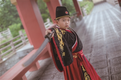 我们首先来到壮观的秦王宫,宫殿和城墙之间,身着古装的演员穿梭期间,他们好像在拍戏。我也穿上了小秦王的衣服,假装自己是古代的王子,行走在长长的走廊里,感觉自己真的穿越了。景区内正在进行“英雄比剑”,穿着古代服装的人们挥舞着闪闪发光的剑,行云流水,就像电影里的大侠一样。我看得眼睛都不舍得眨一下,真是太精彩了!