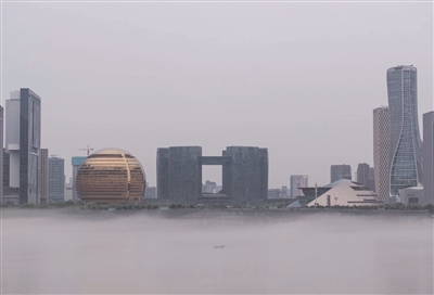 近日,杭州钱塘江江面上出现“平流雾”景观,雾气升腾,水汽氤氲犹如一幅充满诗意的画卷。今天起副高有所增强,杭州处在梅雨带边缘。4日起随着副高再次加强,盘踞在杭州地区的梅雨带即将“一路向北”了。商报记者 严嘉俊 摄影报道