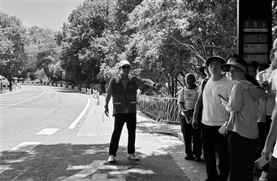 这样的炎热理论上会打消一部分人出行的欲望,但对于张文忠所驻扎的灵隐东公交站而言,这种理论却并不成立,那里依旧人潮涌动,高温也抵挡不了市民乘客出游的热情。