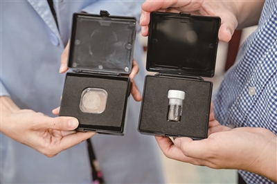 杭高院此次申请到的月壤样品(左为13毫克光片样品,右为200毫克粉末状样品)