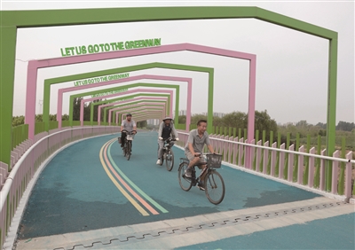 7月9日,自行车爱好者在河北省石家庄市环城绿道东线骑行。近年来,石家庄市依托滹沱河、环城水系等优质景观资源,通过架设桥梁、提升景观和完善绿地等措施,打造景美、智游、畅达的城市绿道健身体系,同时加强环城绿道与中心城区串联衔接,方便市民无障碍步行或骑行。据介绍,石家庄市环城绿道工程全长101公里,目前该工程北、东、南线已竣工向公众开放,西线正在加紧施工。
