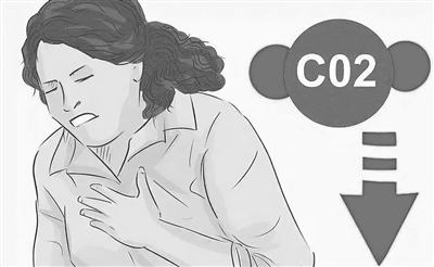 “当人们出现生气、焦虑和紧张的情绪时,心率和血压会上升,呼吸也会不由自主地加快,所以当呼吸过快、换气过度的时候,二氧化碳的生成速度低于排出速度,二氧化碳排出较多,就会导致体内的二氧化碳的含量下降,血液中的二氧化碳浓度随之降低。一旦缺少足够的二氧化碳,酸碱平衡被打破,就会出现呼吸性碱中毒。”马永春介绍,打个比方,人体好比一个天平,左右分别放着酸、碱两种物质。一旦有一方重量过多,天平将因酸碱失衡而倒塌,“酸”超重则是酸中毒,“碱”超重则是碱中毒,继而导致人体的中毒反应。