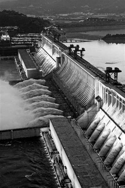 7月20日拍摄的三峡枢纽工程。 随着长江流域主雨区由长江中下游转移至长江上游,三峡区间来水量明显增加。在确保中下游防洪安全的情况下,按照长江委最新调度指令,三峡水库持续泄洪。