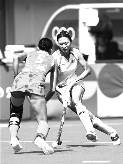 7月29日,中国队球员李红(右)在比赛中拼抢。