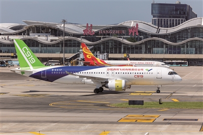 国产大飞机C919首次落地杭州测试