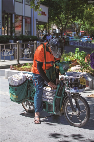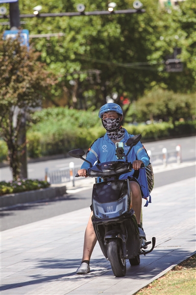 尽管天气炎热,外卖小哥依旧在路上奔波忙碌着