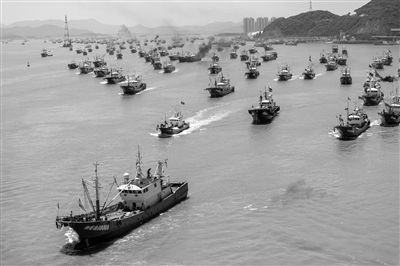数千艘渔船从舟山市普陀区沈家门渔港出发,前往东海海域开启捕捞作业。 8月1日,东海结束了3个月的伏季休渔,单船桁杆拖网(桁杆拖虾)、笼壶类、刺网类、灯光围(敷)网类等四类(专项)特许捕捞作业渔船迎来了开渔季。浙江舟山2000多艘取得特许的渔船结束休渔奔赴渔场投入生产,梭子蟹、红虾等渔获很快将进入百姓的餐桌。