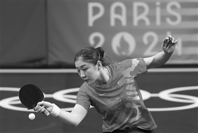 8月3日,陈梦在比赛中。 当日,在巴黎奥运会乒乓球女单决赛中,两名中国选手展开角逐。最终,陈梦4比2战胜孙颖莎,夺得金牌。