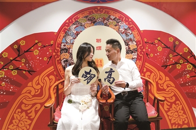 今天是中国传统节日七夕。拱墅区婚姻登记处特别推出了“七夕幸福护航”主题活动,以呼应结婚登记“小高峰”,通过浙里办“浙有姻缘”平台提前增加放号量、提前预审和提早开放登记窗口,确保了服务的高效与顺畅。同时,拱墅区婚姻登记处联合拱墅区婚姻家庭协会举办了“心有灵犀,爱意解锁”新婚主题活动,通过编织同心结、手工制作团扇等环节,为新人提供了个性化的婚礼道具制作体验。图为昨日,一对新人在拱墅区婚姻登记处拍照留念。