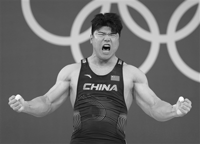8月10日,中国选手刘焕华在比赛中。 当日,在巴黎奥运会举重项目男子102公斤级比赛中,中国选手刘焕华夺得冠军。