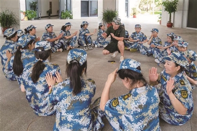 整齐的服装、嘹亮的口号、饱满的精神……一场“小民兵训练”正式拉开了九龙交流团切身感受“千鹤精神”的序幕。大朋友小朋友们纷纷换上训练服装,整齐列队,跟随教官的口令进行训练,感受那份坚韧不拔的精神。