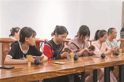 杭州不仅以其自然美景闻名于世,更是一座历史悠久的文化之城。这里保留着众多非物质文化遗产,它们如同一座桥梁连接着过去与未来,同时也蕴含着丰富的地域特色。九龙交流团也走进了千鹤书房,感受非遗的魅力。