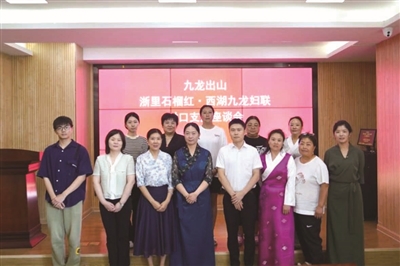 九龙县妇联一行参观了三墩镇民生综合体,并在浙里石榴红·西湖九龙妇联对口支援座谈会上,就两地妇女儿童工作概况以及经验进行了研学交流,内容涵盖了机构运行机制、妇女儿童权益保护经验、未来发展方向等主题。