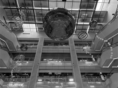 一楼中庭区悬挂多个灯球装饰物,展现80年代“迪斯科”风格