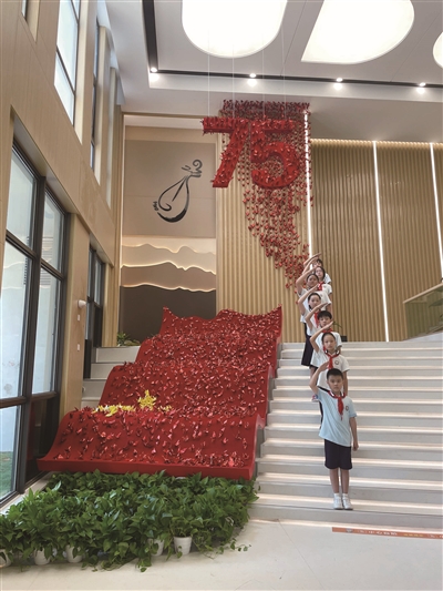 昨天是中小学开学的日子。大关小学学院路校区用一堂红色思政课,让学生在彩纸上写下对祖国的祝福语,折成千纸鹤,通过这样的快闪活动,激发孩子们的爱国热情。商报记者 夏莹 摄影报道